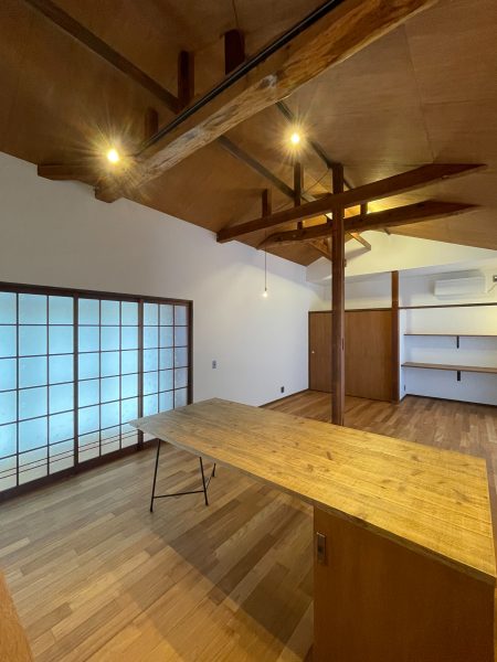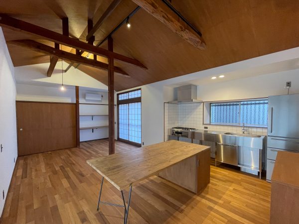 天井、壁に隠れていた梁、柱を生かした開放的な空間です。