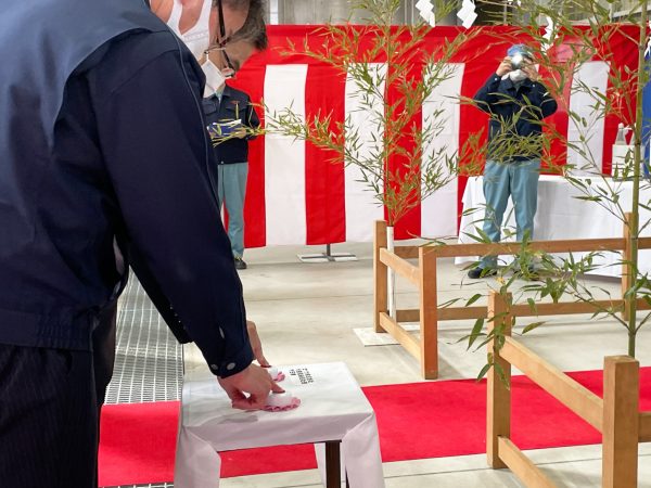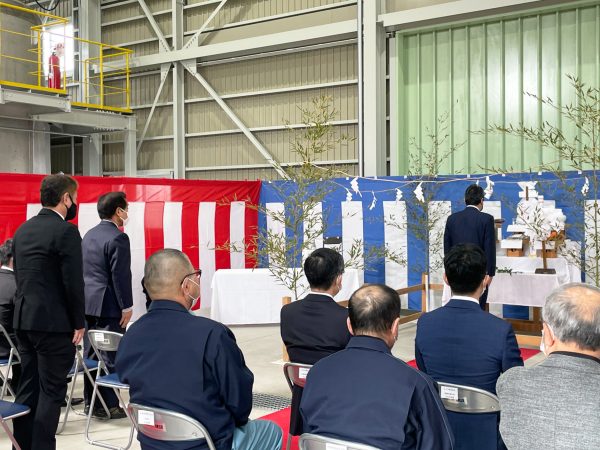 こちら、落成式当日です。完成したB工場内で行われました。