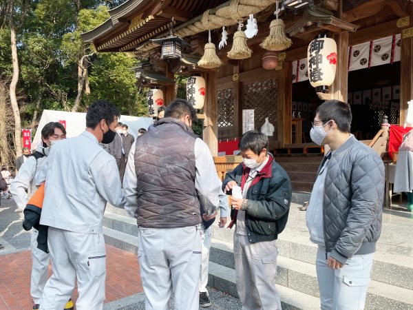 去年は社員全員での参拝は控えましたが、今年は皆揃っての初詣が出来ました。